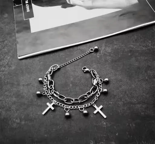 drop cross double laye bracelet
